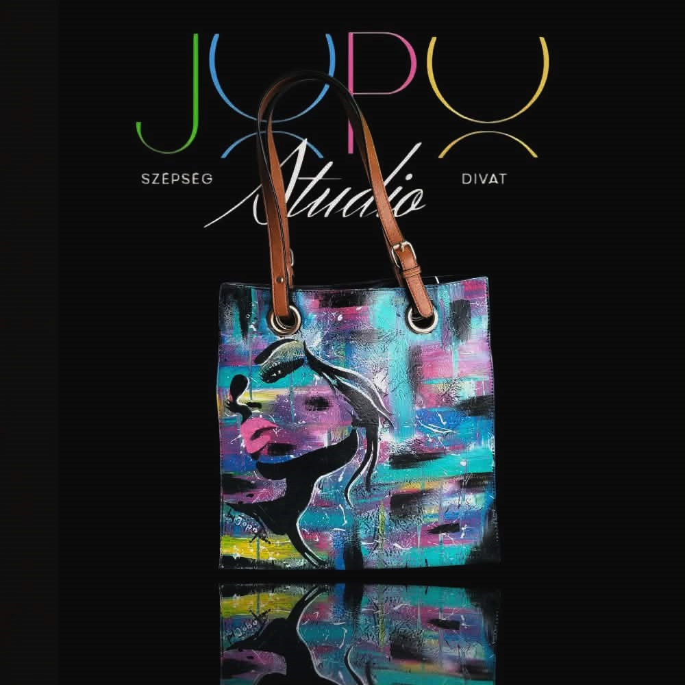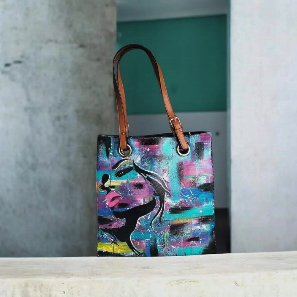 Színes, művészi shopper a városi női energiához. Egyedi festett hatás, feltűnő megjelenés minden napra.