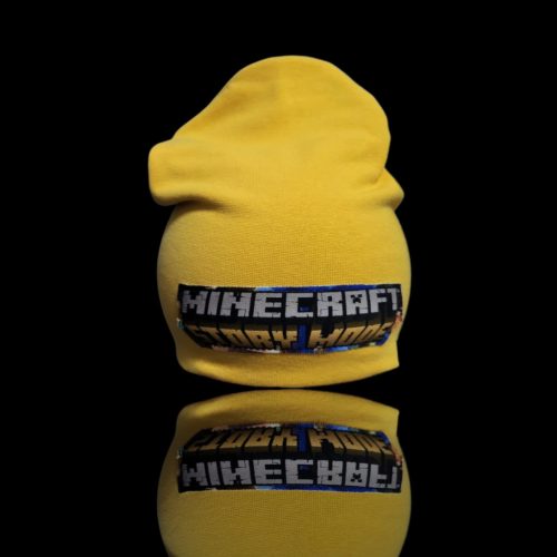 Sárga sapi rugalmas kevertszálas pamut anyaggal bélelve elején Minecraft felvarrt mintával