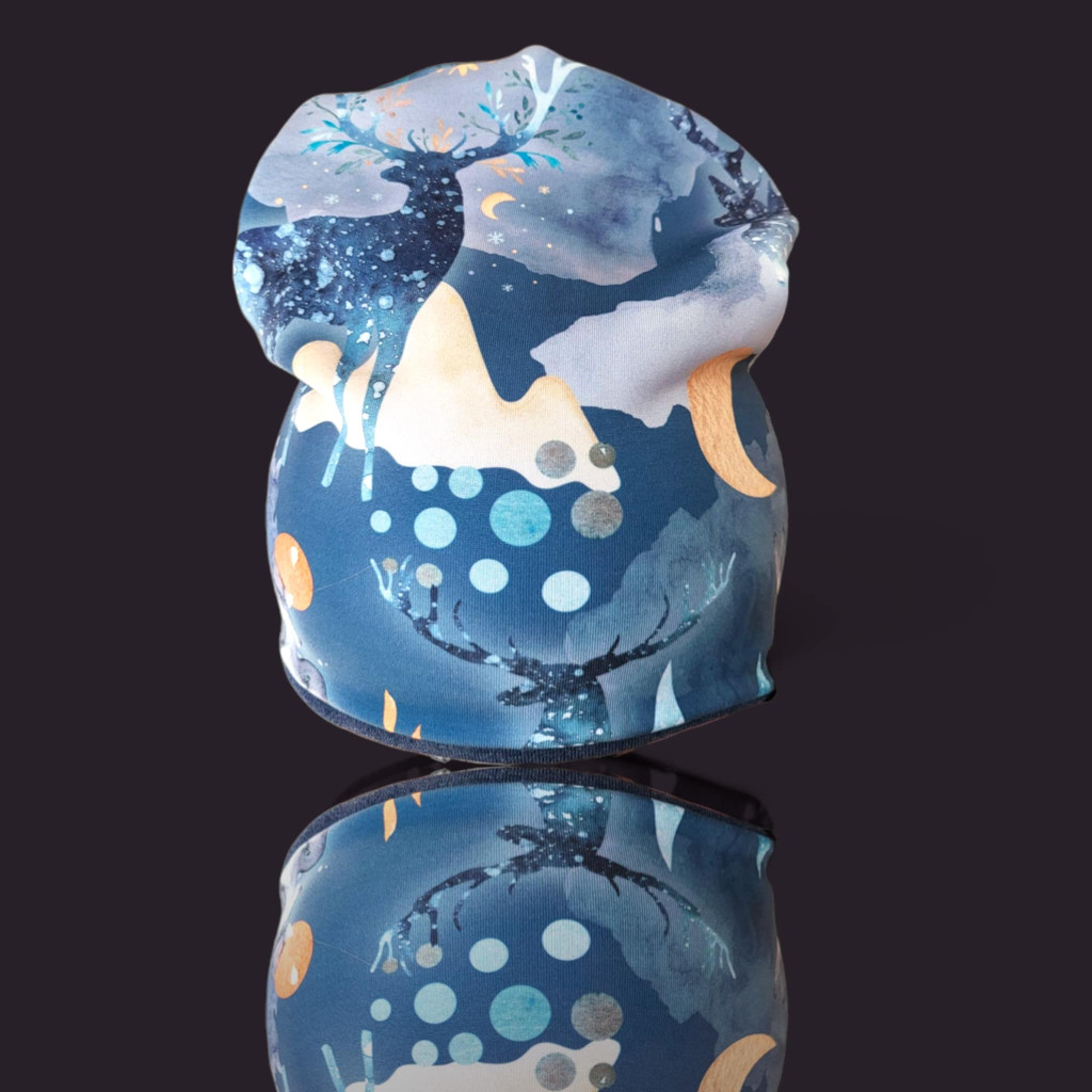 Téli mintás sapi rugalmas kevertszálas pamut anyaggal bélelve . A két réteg között bolyhozott így téli hidegebb időkre is alkalmas.